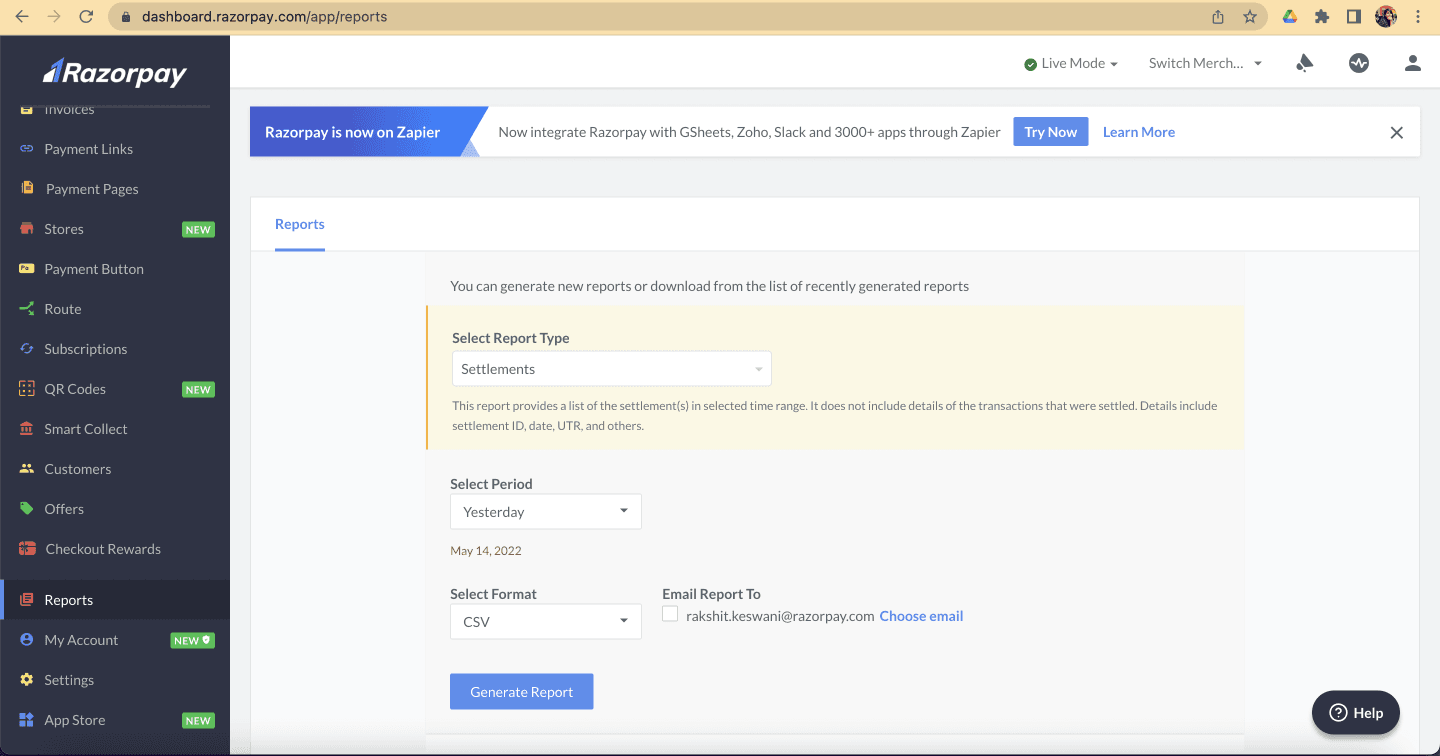 Merchants using the Razorpay dashboard frequently downloaded transaction reports—some daily, others multiple times a day—for reconciliation. Larger firms relied on Razorpay’s engineering team to manually create report schedules, but modifying these schedules required merchants to go through a lengthy approval process.