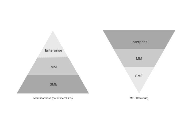 If we try to understand Razorpay's user base and their contribution to business, the presentation would look like these triangles.